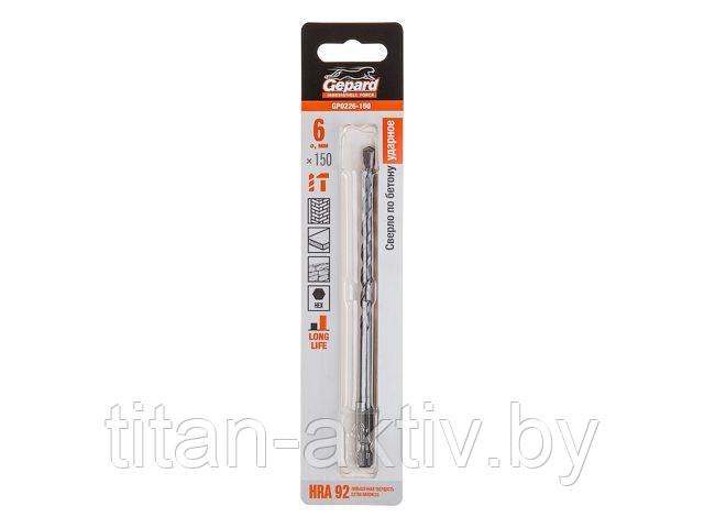 Сверло по бетону 6х150мм шестигр. GEPARD (GP0226-150) (усиленная пластина, Impact, победитовое ударное)